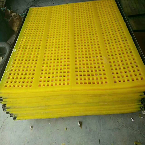 按聚氨酯篩板結構形式分為四種: 鑲嵌式 螺栓聯接 壓條聯結 篩鉤聯結。例如壓條連接式:請先將篩板放置篩面上,然后根據篩子的支撐梁結構進行安裝。一般應在篩機的兩側,篩板的上層,沿下料方向用寬度適宜的u型長條鐵板隔適當距離鉆上螺絲孔,然后用螺栓與底層支撐梁擰緊,使篩板牢牢固定在中間。支撐梁和長條鐵板與篩板的接觸面好用橡膠條(可利用舊膠管)襯墊。篩子中間的支撐梁上方,也可按此方法安裝。我廠生產的篩網其抗拉強度,反彈指數、耐磨性能均處于國內外同類產品的先進水平,可滿足各種等級機配需求。